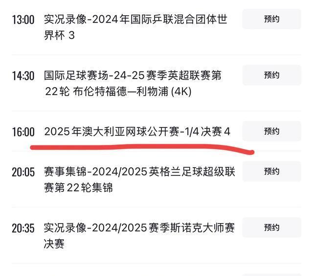 CCTV5+的主要赛事还是澳大利亚网球公开赛,今晚将进行1/4的的比赛,所以大家可以根据自己的喜好进行选择观看。